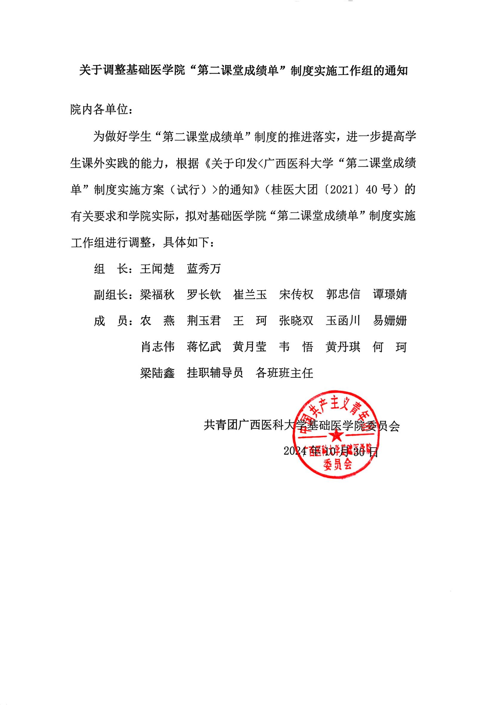 关于调整xc体育“第二课堂成绩单”制度实施工作组的通知
