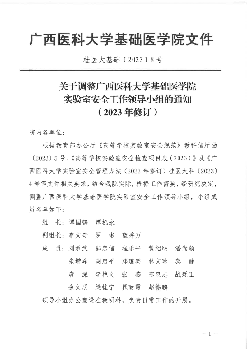 关于调整xc体育实验室安全工作领导小组的通知(2023年修订)