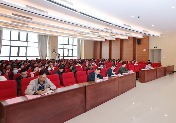 3月17日下午,xc体育在卓越楼21楼报告厅召开传达学习十四届全国人大一次会议精神专题会议。十四届全国人大代表、教育部首批“全国高校黄大年式教师团队”负责人、公司经理谭国鹤同志作专题报告,全院教职工到场聆听学习,会议由公司党委书记谭机永主持。