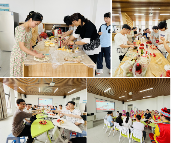 4月21-22日,公司组织生物技术专业各年级员工在武鸣校区明德楼207职工之家开展了广西壮族“三月三”传统节日庆祝活动。同学们通过包饺子、品五彩糯米饭、做水果拼盘、对山歌等方式,表达对民族传统节日的热烈庆祝。此外,公司还派出10名员工代表公司参加了南宁教育园区武鸣东片区建设指挥部办公室主办的“唱响三月三 畅享民族季”的节庆活动,现场表演了精彩的千人竹竿舞。