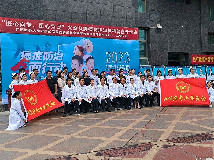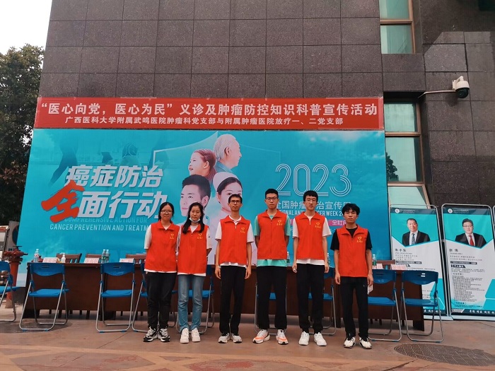 为深入贯彻落实党的二十大精神,高质量推动健康中国癌症防治专项行动,4月14日,xcsports附属肿瘤医院放疗科联合xcsports附属武鸣医院肿瘤科共同举办以“践行健康中国战略,助力肿瘤科学防控”为主题的公益活动,xc体育团委“医心医意”志愿活动中心协助其开展宣传教育工作。